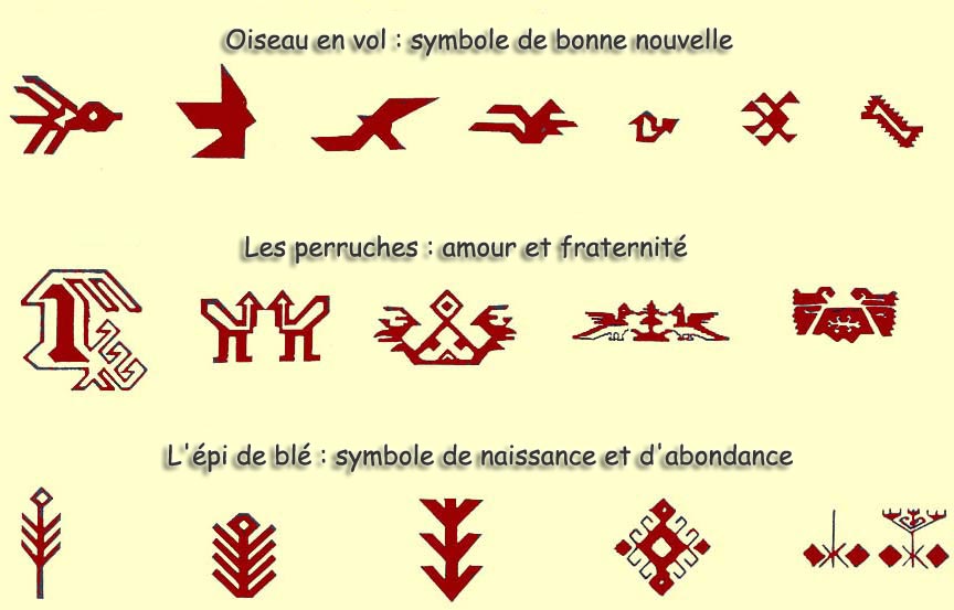 La signification des principaux symboles utilisés dans les dessins des tapis